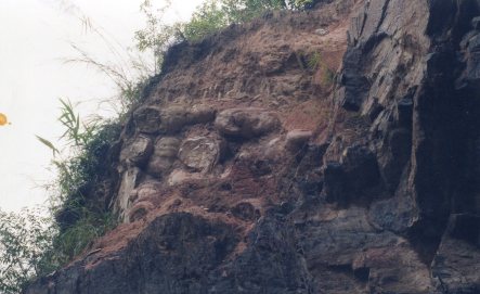 Figure 2: Exposed corestones encased in saprolite. Site is a zeolite mine near Heping, Guangdong (Photo by W. Parham).